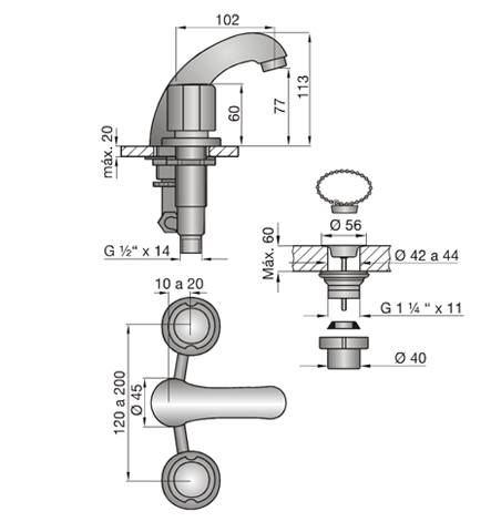 | Caudal | Caudal mínimo de salida a presión estática requerida de 0,4 BAR y caudal mínimo de alimentación de 20 lts por minuto (en conexiones fría y caliente): 6 lts por minuto. |